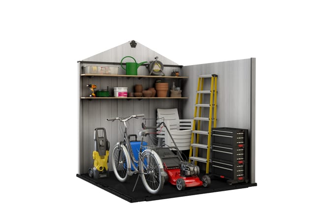 Recensisci per primo “Casetta da giardino con pavimento KETER Oakland in polipropilene grigio con porta doppio battente, superficie interna 4.04 m² e spessore parete 20 mm”