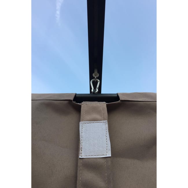 Il suo tessuto è in poliestere, idrorepellente. La pioggia non gli causa alcun problema. Pieghevole a piacere, la pergola autoportante Regia saprà soddisfarvi al sole e all’ombra.